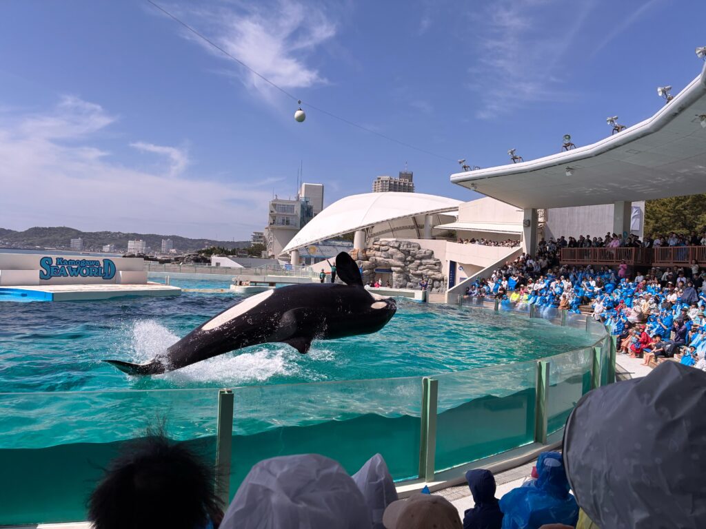 シャチの水しぶきがあまり飛んでこなかったので良かったです。