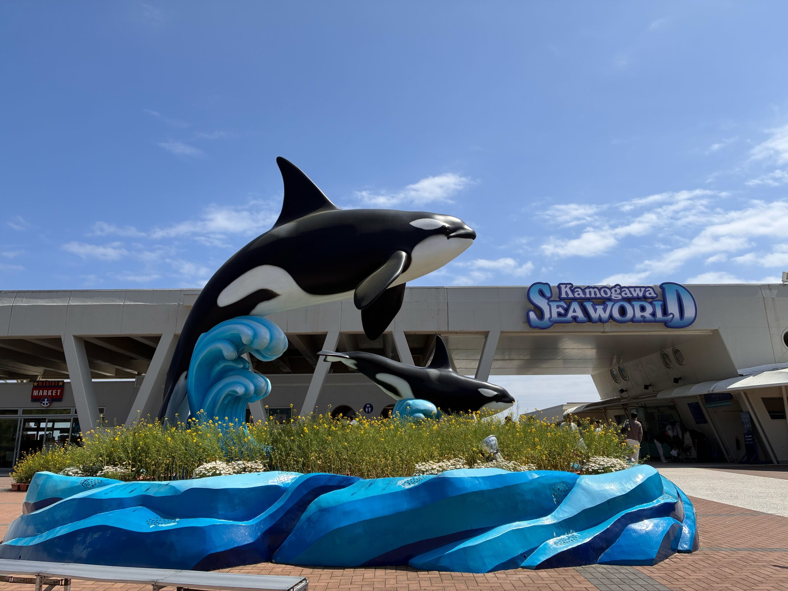 入口前には大きなシャチがお出迎えしています。