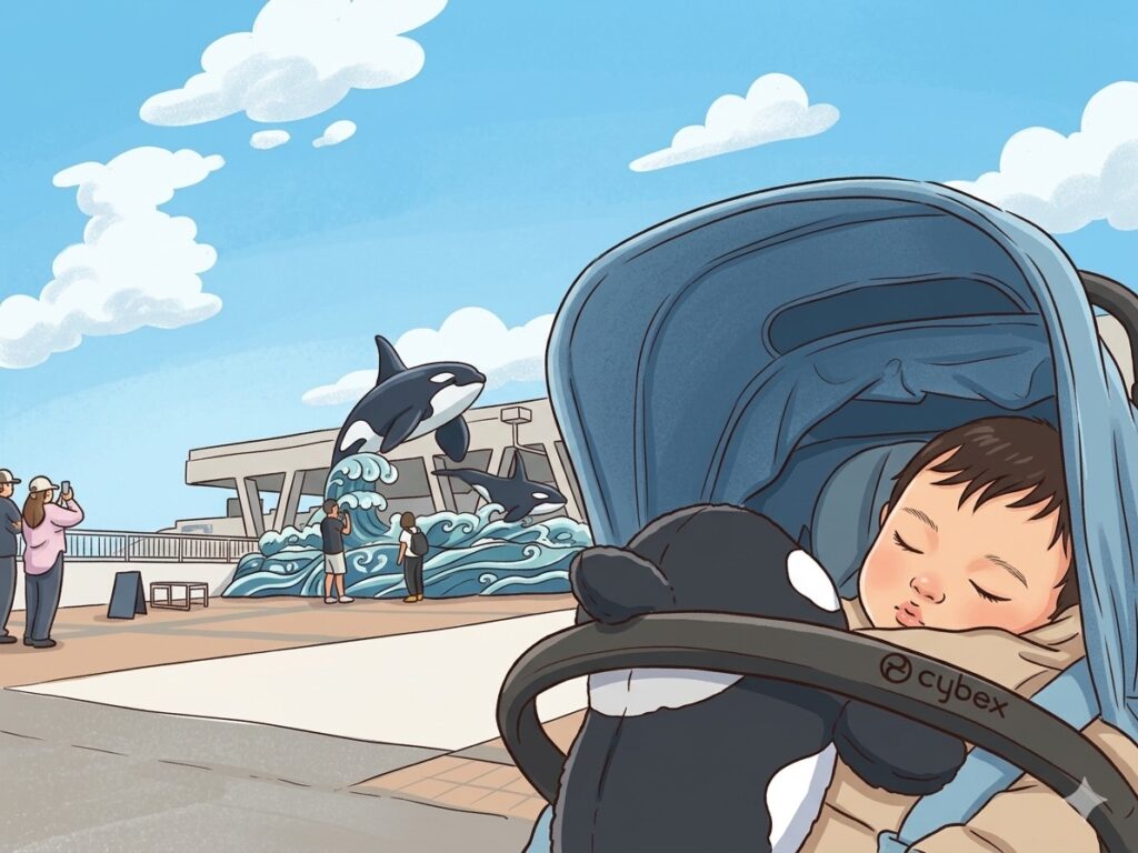 ベビーちゃんも迫力のあるシャチに大喜びしていました。
