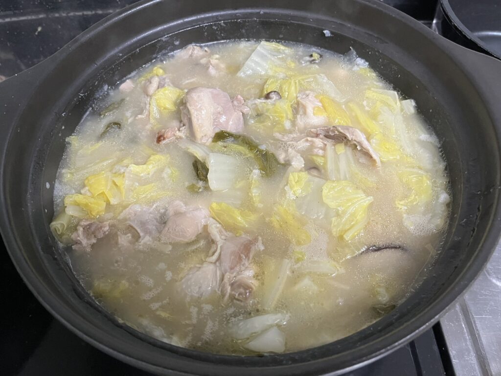 椎茸と白菜は鍋にしようとして入れました。調理自体は食材を入れて煮込むだけなので簡単でした!お米が入っているのでスープがトロっとしているので冷めにくいので保温性もありました。少し整える程度に塩を入れましたが、お粥のように好みの分量で後入れして食べるのが普通らしいです
